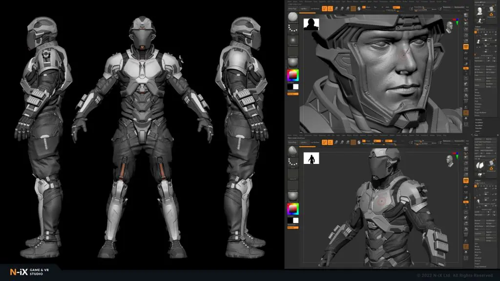 Today, 3D modeling outsourcing is one of the most demanded game development services, and Ukraine is becoming a more and more desirable destination for it. With this in mind, we decided it’s high time to write a guide about 3D character development, taking our internal Futuristic Soldier project as an example. In this article, our Lead 3D Artist Dmytro Bikus and Animator Yurii Harazha will share their experience in the full-cycle development of a 3D character: from conception and sculpting to texturing and animation.