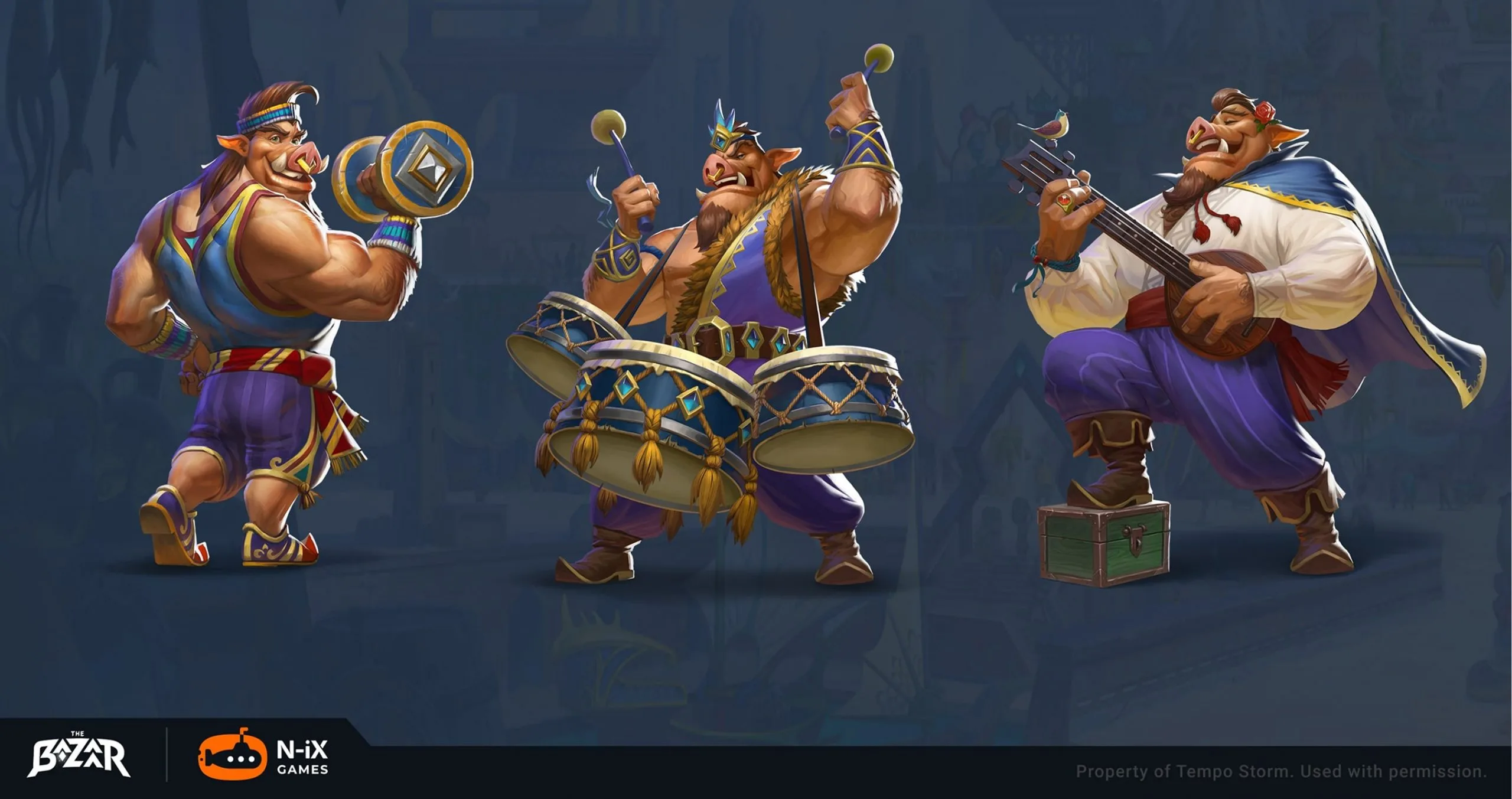 The Bazaar is a genre-defying roguelike-deckbuilder-meets-PvP-auto-battler, and one of the most creatively ambitious stylized projects we’ve had the pleasure to work on. Developed in close partnership with Tempo, N-iX Games took the lead on art direction, crafting a world that blends Middle Eastern bazaars with sci-fi skylines and steampunk vibes. Our team designed the game’s vibrant environments, from sunlit trade ports to neon-lit alleys, each filled with cultural detail and personality. We created a rich roster of diverse heroes, hundreds of hand-painted items, interactive 3D boards, and a responsive UI full of character.