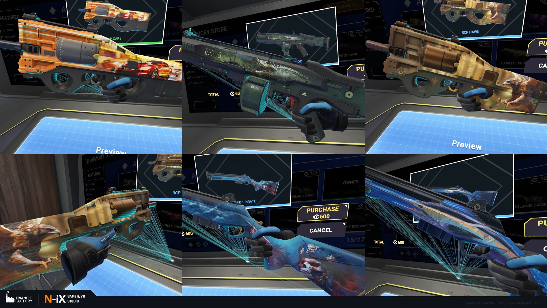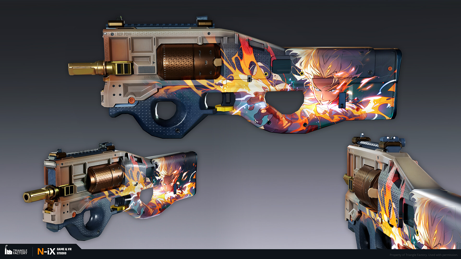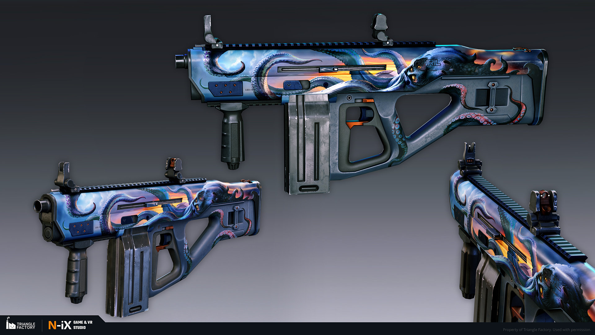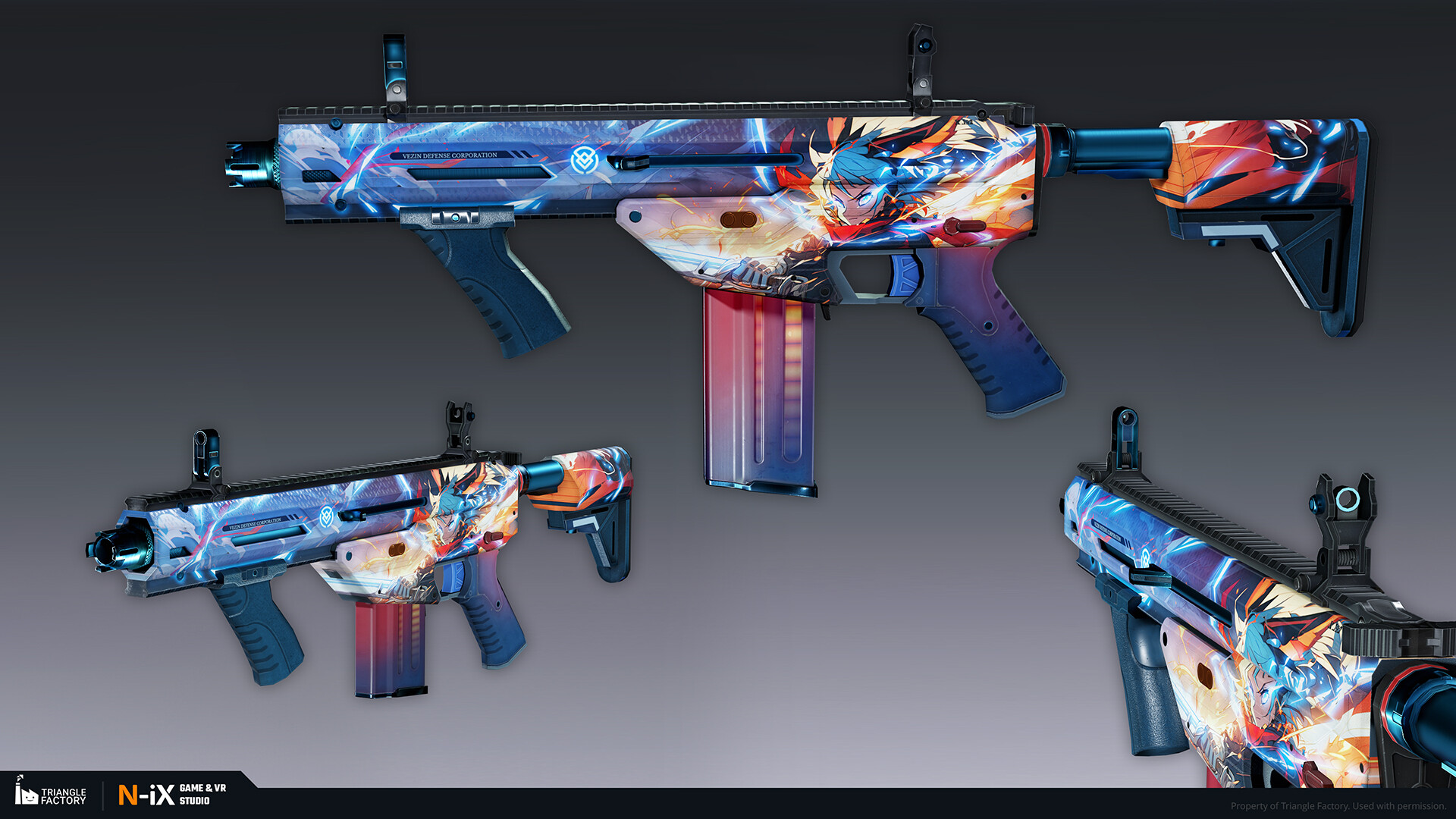 Within the game, weapon skins are categorized into five rarity tiers, each boasting a distinct gradation of visual appeal. Notably, the upper echelons of rarity exhibit 3D-like features and an overall more sophisticated art design. Our teams of 2D and 3D artists were responsible for creating several dozen weapon skins from tier 2 to 4, following the established visual gradation.