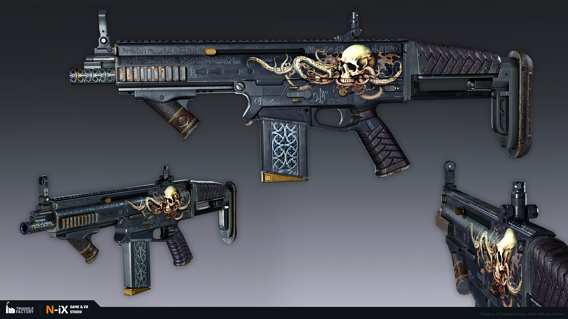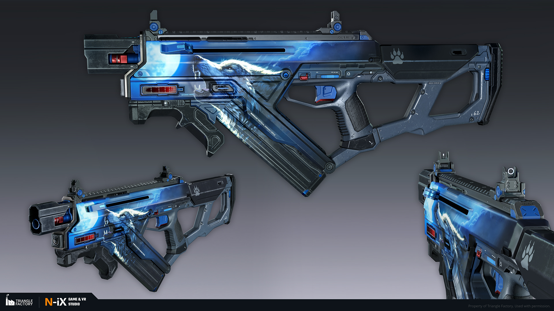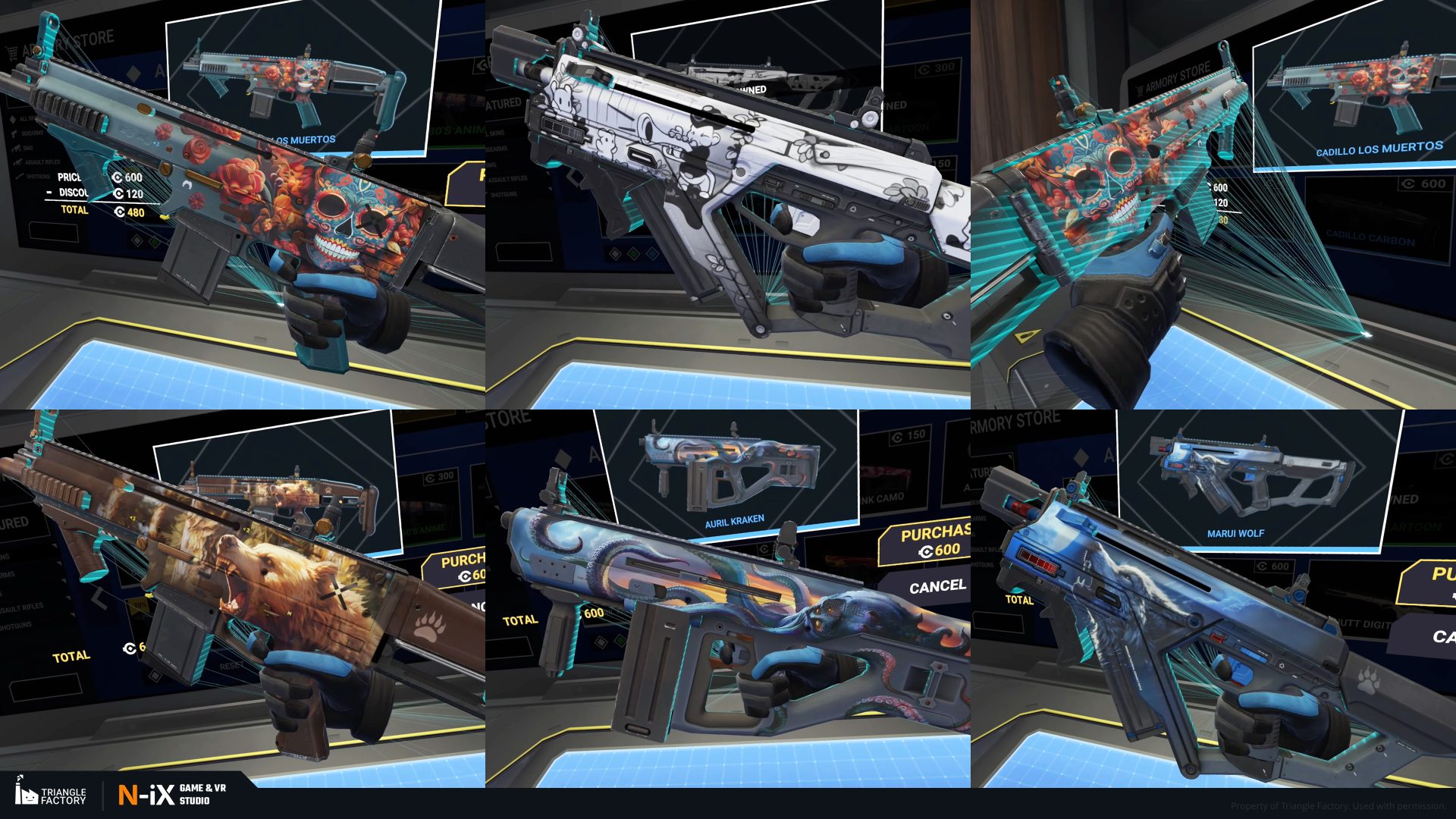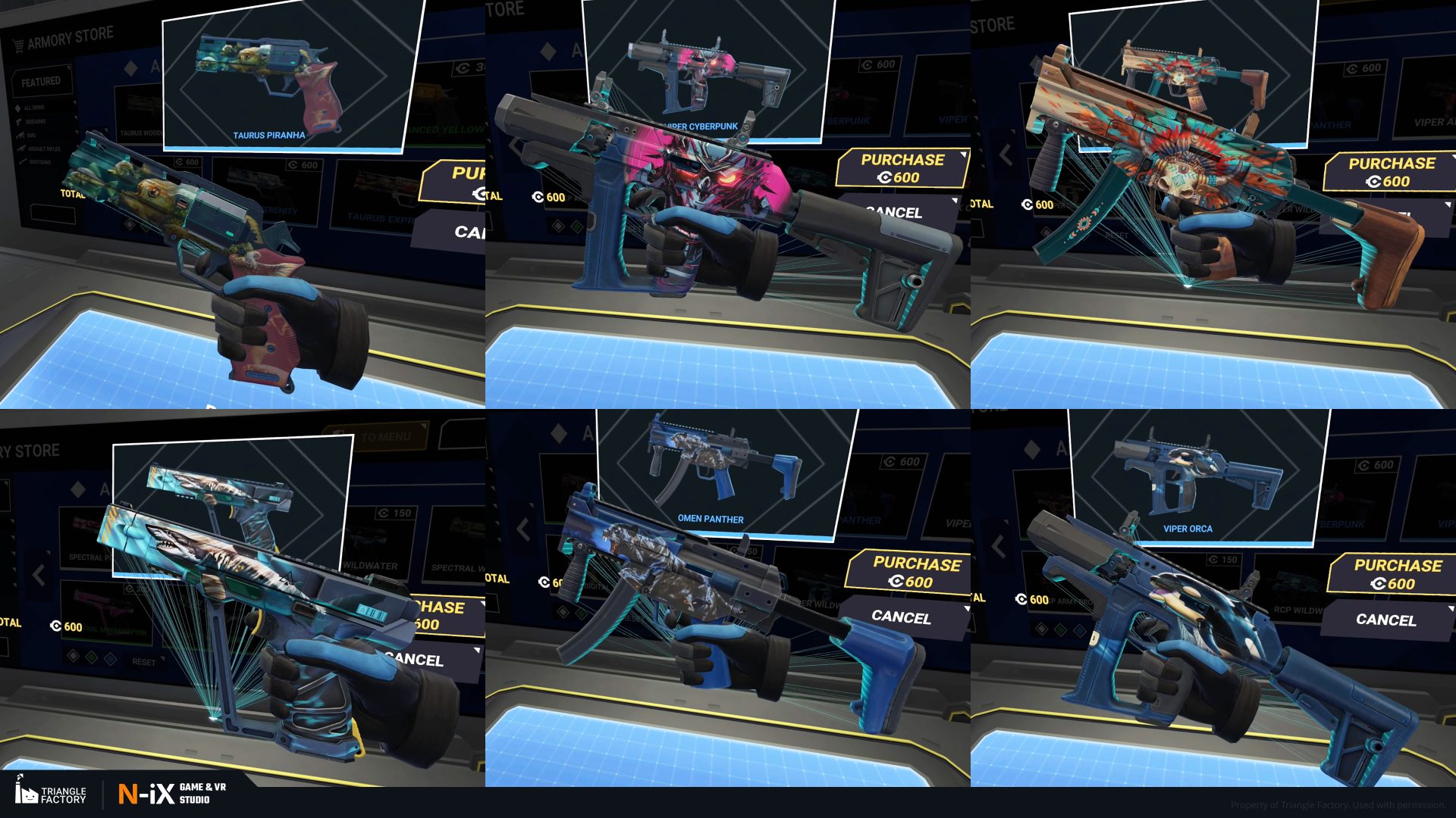 Within the game, weapon skins are categorized into five rarity tiers, each boasting a distinct gradation of visual appeal. Notably, the upper echelons of rarity exhibit 3D-like features and an overall more sophisticated art design. Our teams of 2D and 3D artists were responsible for creating several dozen weapon skins from tier 2 to 4, following the established visual gradation.