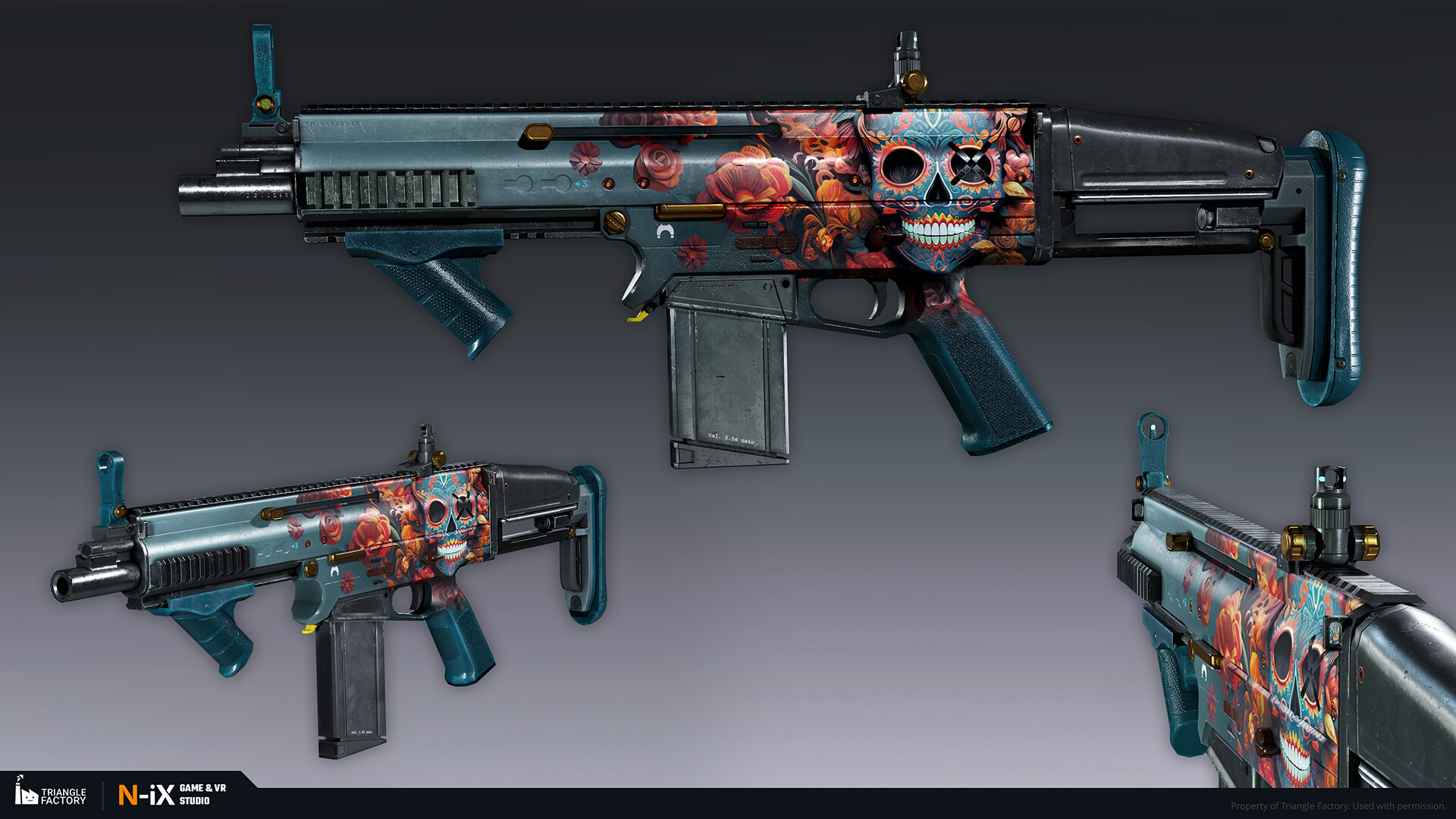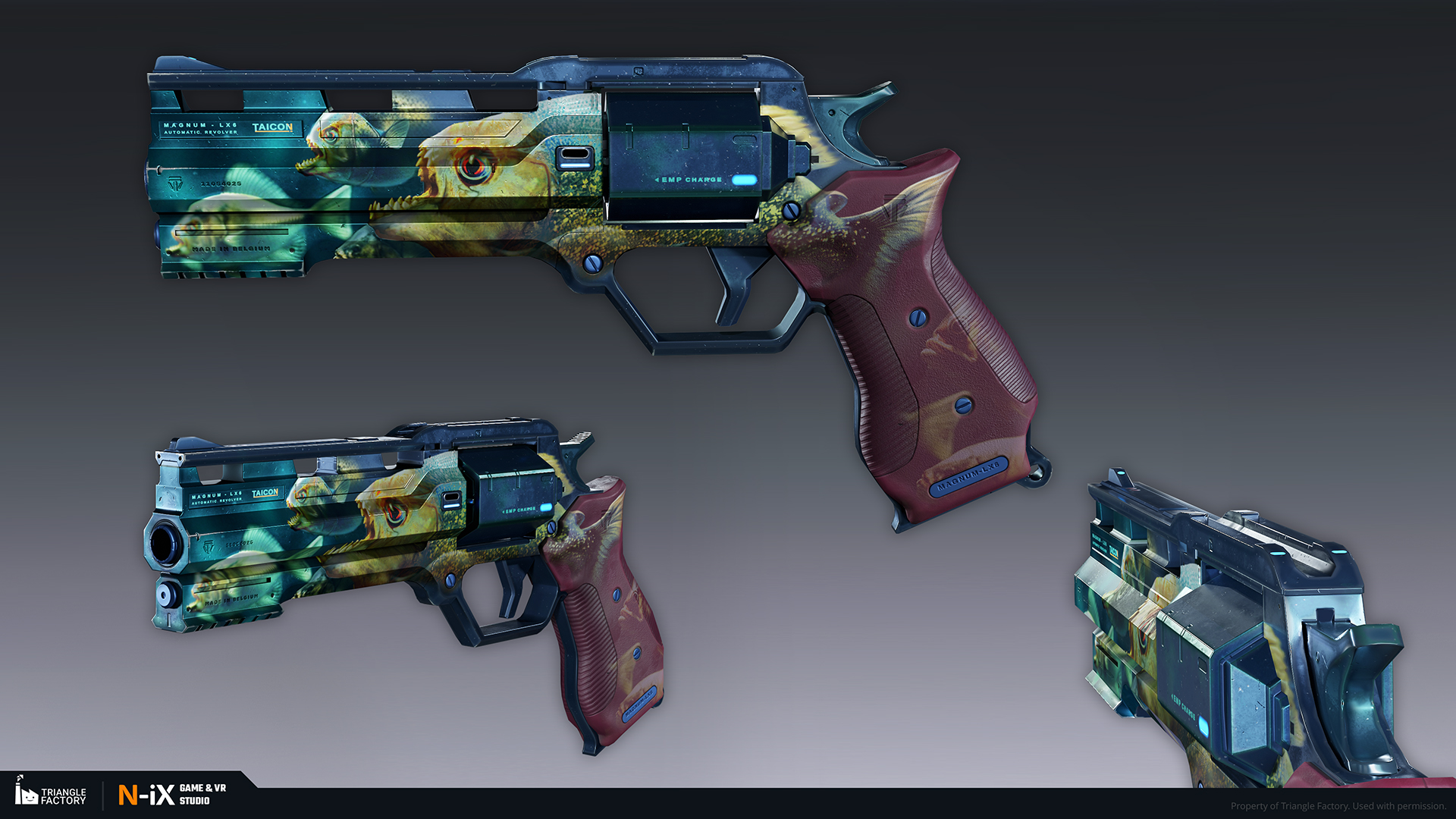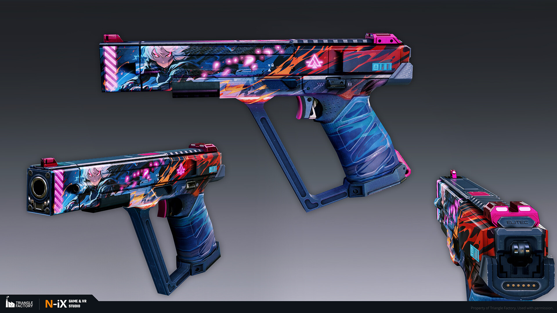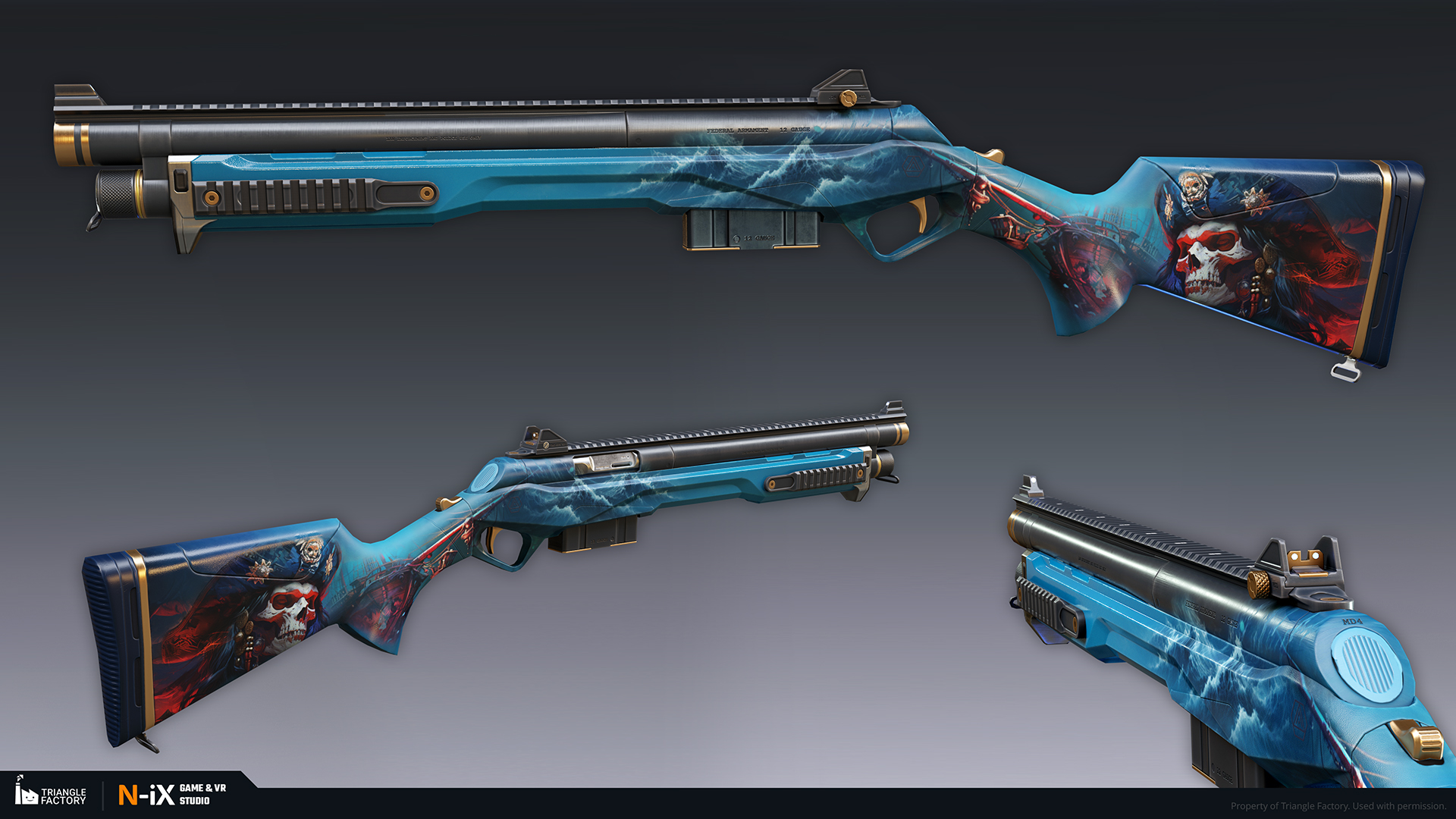 Within the game, weapon skins are categorized into five rarity tiers, each boasting a distinct gradation of visual appeal. Notably, the upper echelons of rarity exhibit 3D-like features and an overall more sophisticated art design. Our teams of 2D and 3D artists were responsible for creating several dozen weapon skins from tier 2 to 4, following the established visual gradation.