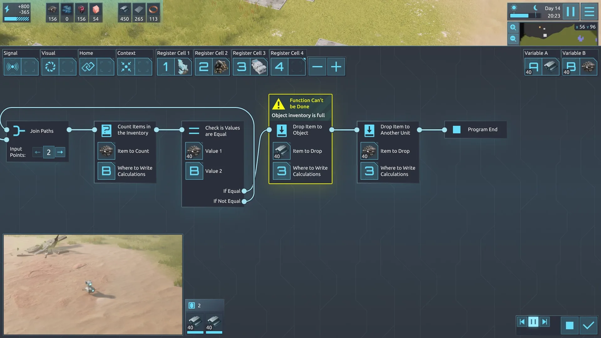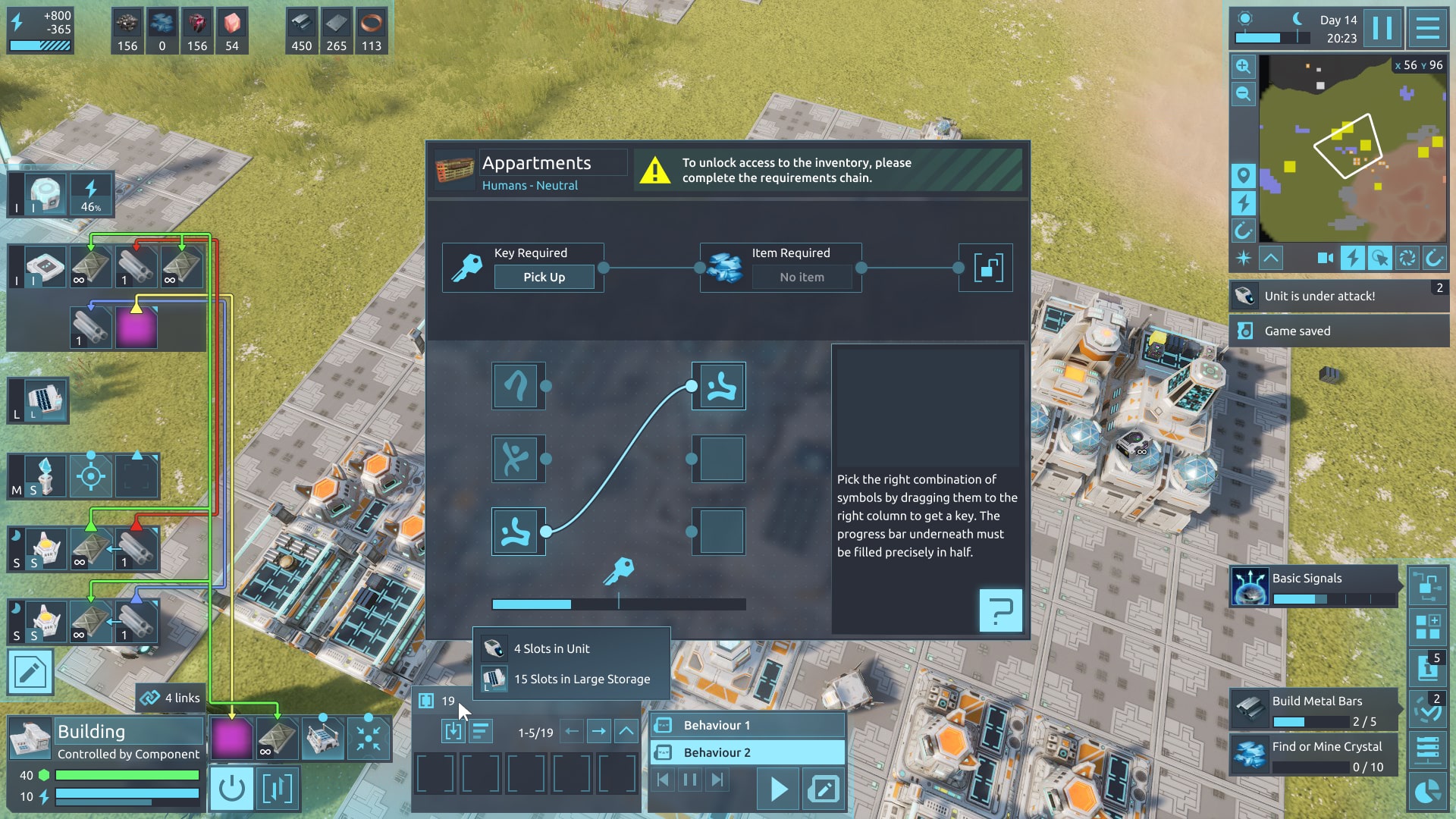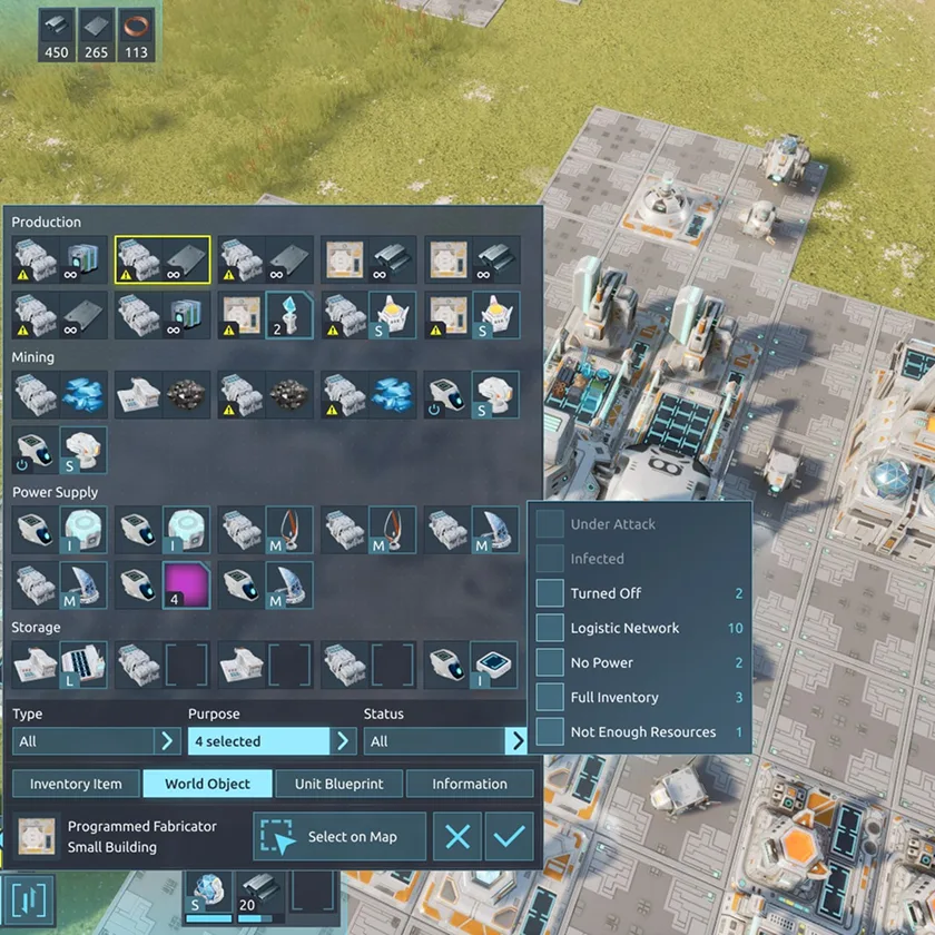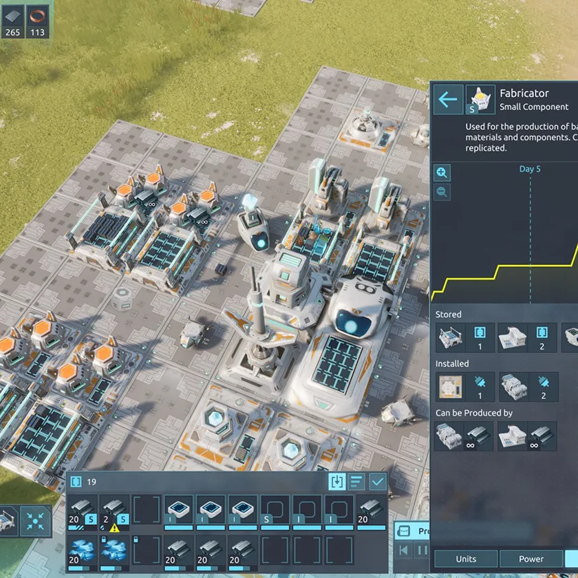 In Desynced, every unit or building is a template for which players decide the functionality. This means that you can reprogram and equip each unit with Components to define their role, such as calculating resources, performing a specific action, etc. At the same time, individual Components of the system can communicate with each other, creating a complex mechanism that can operate on its own and autonomously react to various game factors.