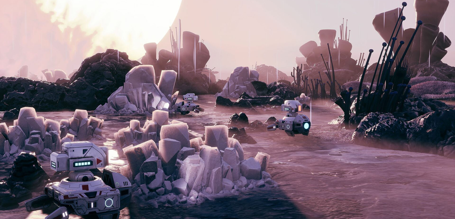 Desynced is a sci-fi survival strategy game that is being developed by Stage Games, a Tokyo-based studio formed by the game dev industry veterans. The events take place in a world where AI is on the brink of self-awareness. Players get to explore new territories and biomes, harvest resources, build bases, and fight off hostilities using fully customizable units. The game features: