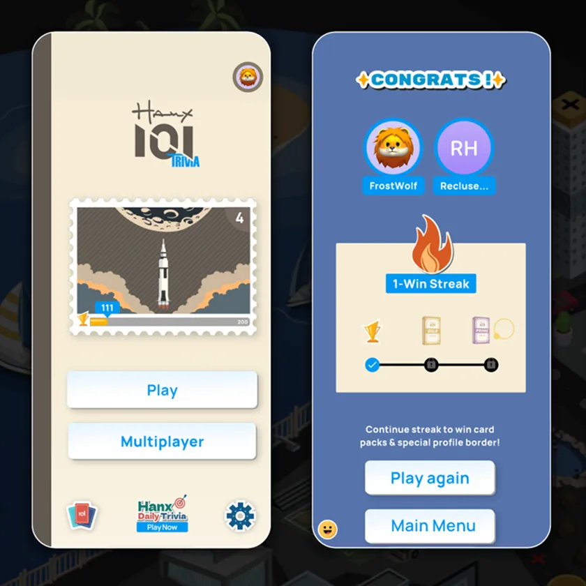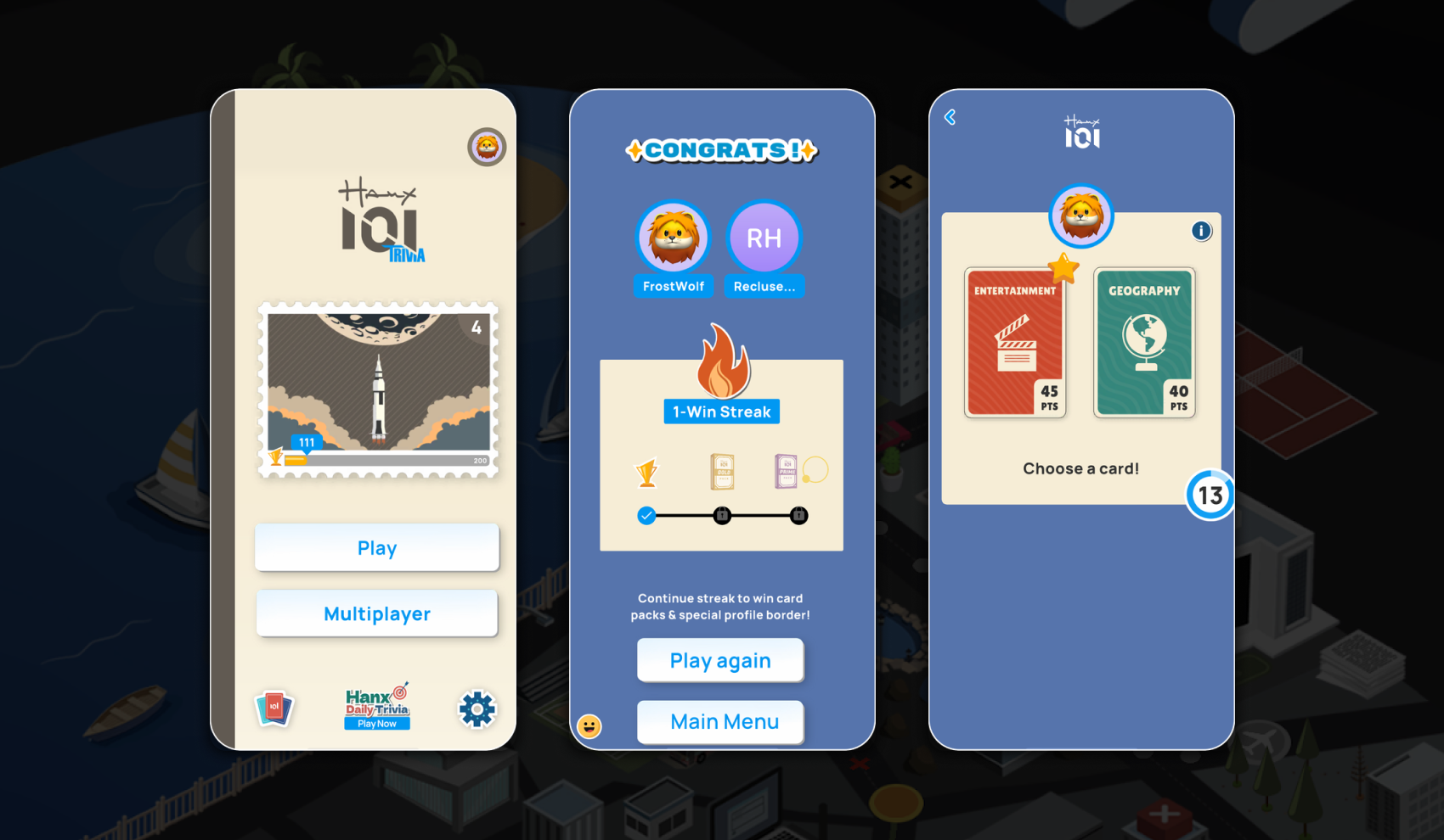 Hanx101 Trivia is a trivia game from BlueLine Studios that was created and developed in partnership with award-winning actor and filmmaker Tom Hanks. The game features questions in several categories, including history, math, geography, food, and more. A player has 10 seconds to answer each question and gets a point for every right answer, as well as bonus points for consecutive correct answers. The game allows players to participate both in single-player and multiplayer trivia games. Tom Hanks himself isn’t physically in the game, but the actor offers a few words of encouragement after each level.