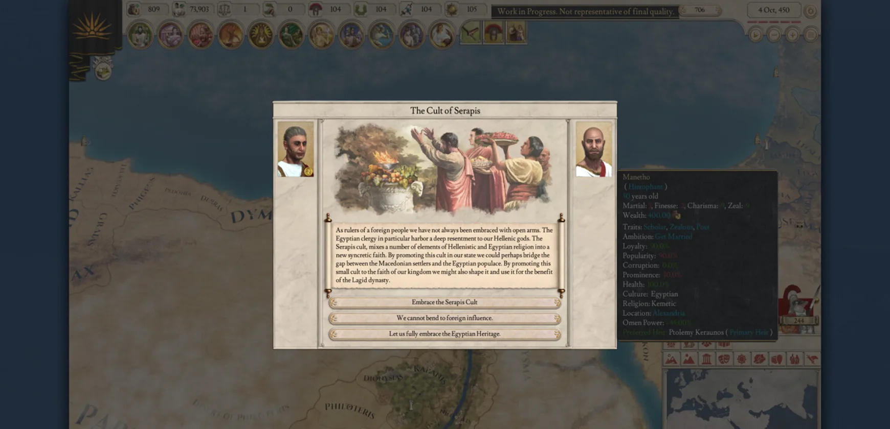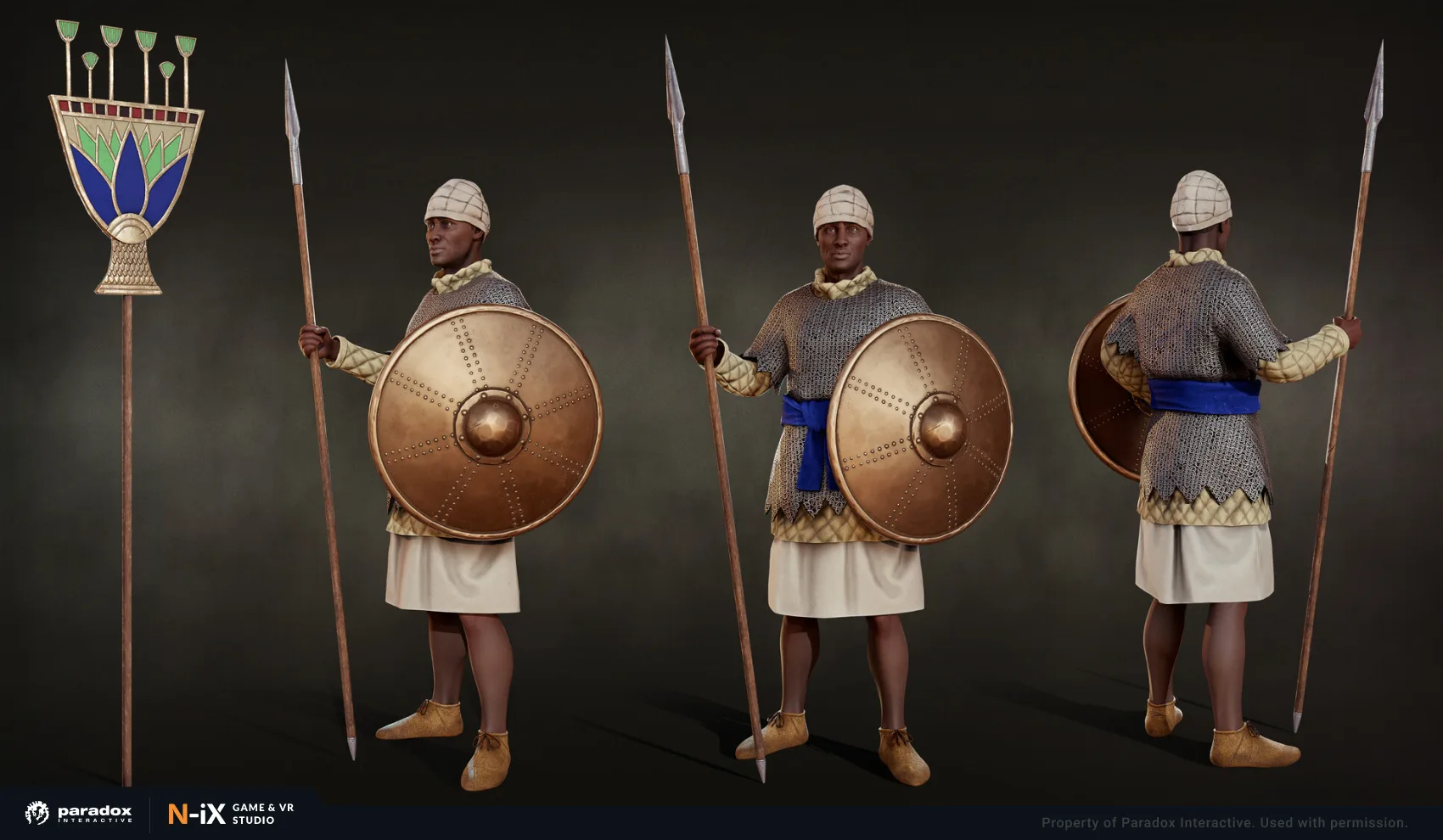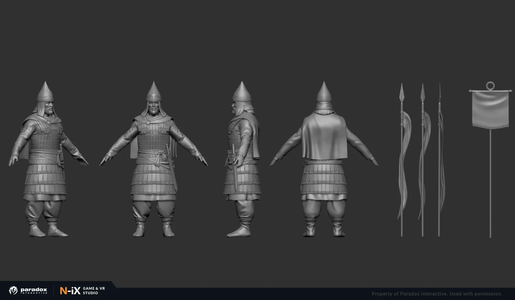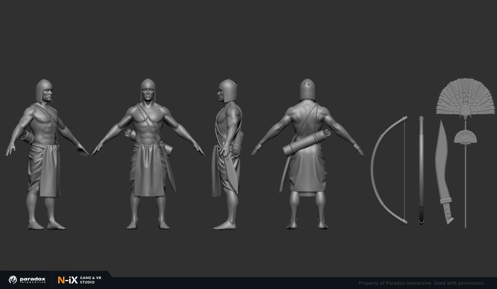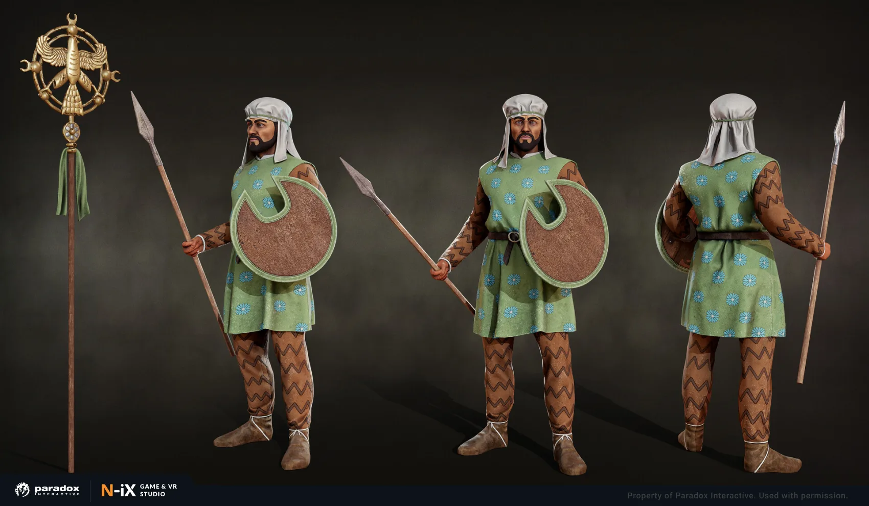 Art Production. Paradox Interactive required N-iX Games to perform many artworks to illustrate in-game events and military traditions of different cultures, represented in the game. The key feature was to copy the antique style with its low contrast and a limited array of colors, to make them look like murals on marble.