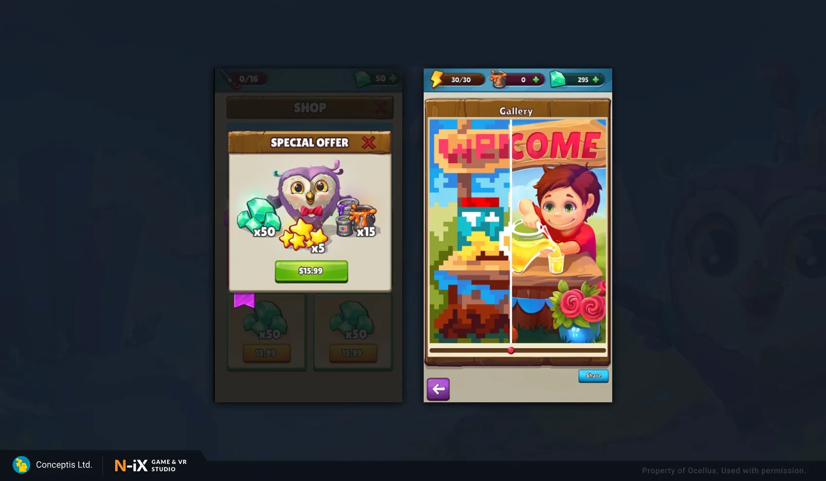 N-iX team fulfilled the client’s goal to transform their hard-core game into a casual game targeting the mass audience. We provided full-cycle game development for Conceptis and delivered a casual free-to-play game on Android and iOS that includes: