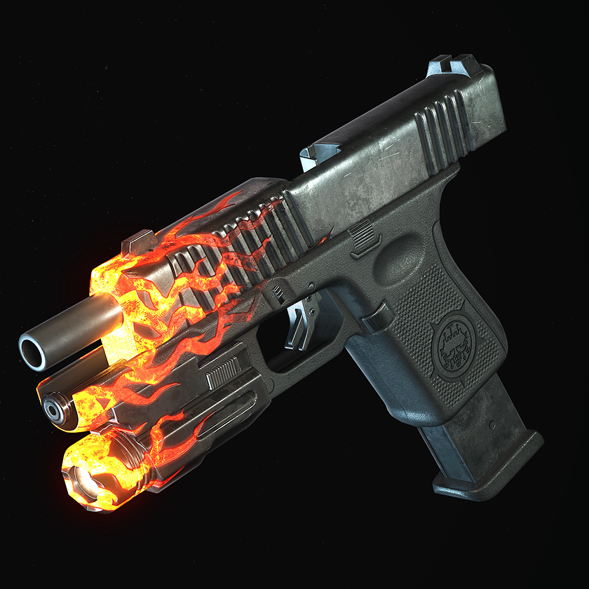 Additionally, we contributed to the game’s level design and 3D art production. Our team of artists modeled all of the weapons you’ll find in the game (including shotgun, semi-automatic pistols, grenade launcher, soul gun, etc.), created some enemy models, and delivered an array of environment props (like shootable objects that give you weapon buffs or upgrades, player/main enemy seats, and various obstacles).