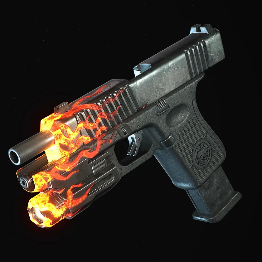 Additionally, we contributed to the game’s level design and 3D art production. Our team of artists modeled all of the weapons you’ll find in the game (including shotgun, semi-automatic pistols, grenade launcher, soul gun, etc.), created some enemy models, and delivered an array of environment props (like shootable objects that give you weapon buffs or upgrades, player/main enemy seats, and various obstacles).