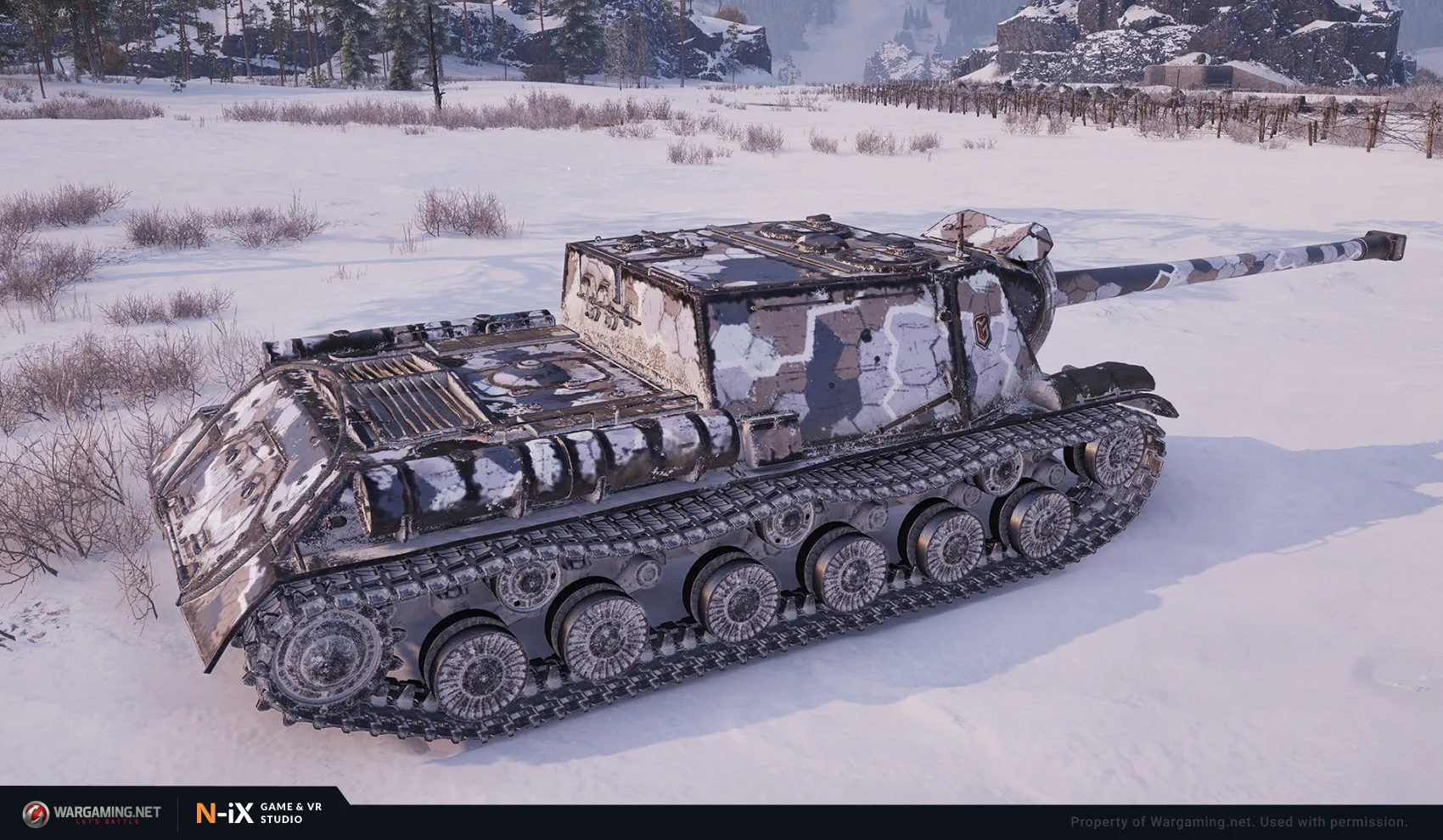 The project scope included not only “Special” tank styles but also historically correct camo patterns. Before the start of the production cycle, Wargaming provided our team with a theme and references nearly for every required tank style. Then our team applied procedurally generated seamless textures created with Substance Designer to achieve a unique look for every tank style. This method allowed us to change the texture’s dimensions without losing its quality. To test the look of camouflage patterns on different tanks, the N-iX team used custom software provided by Wargaming.