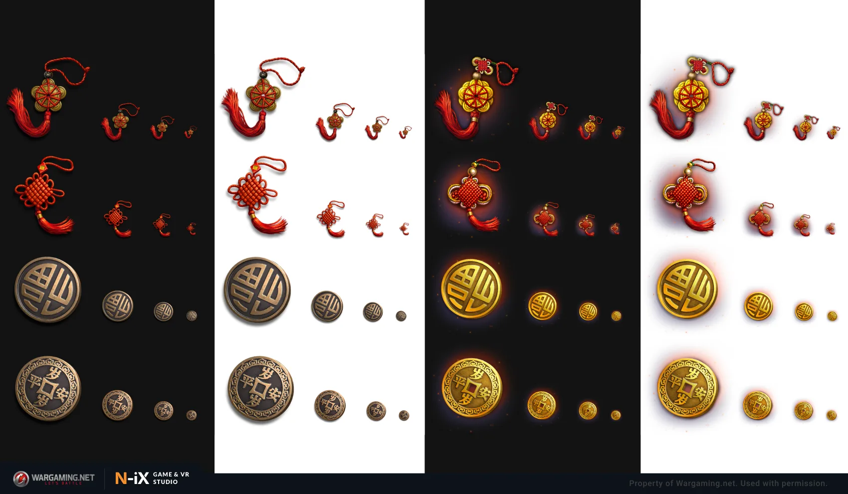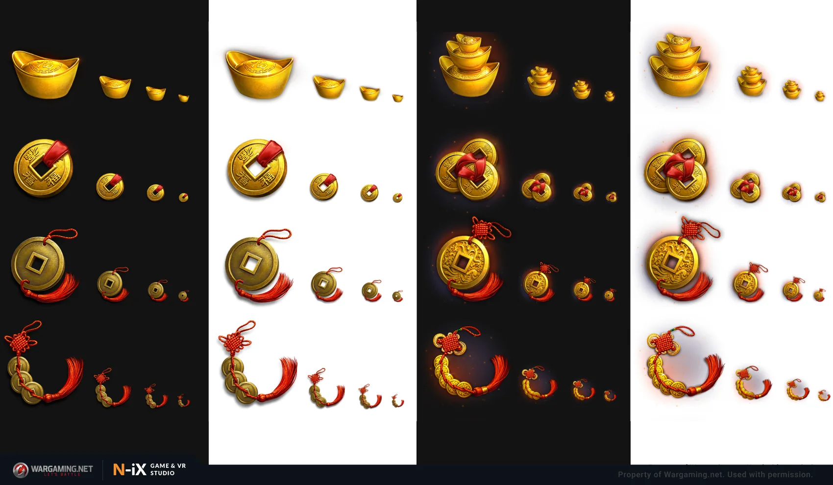 Additionally, our team of artists was in charge of creating a diverse set of icons for a number of in-game events. These include creating a smashing 2D art style for essential equipment items, medals, tournament budges, charms, and many other in-game rewards for such events as Lunar New Year, seasonal Battle Passes, and others.