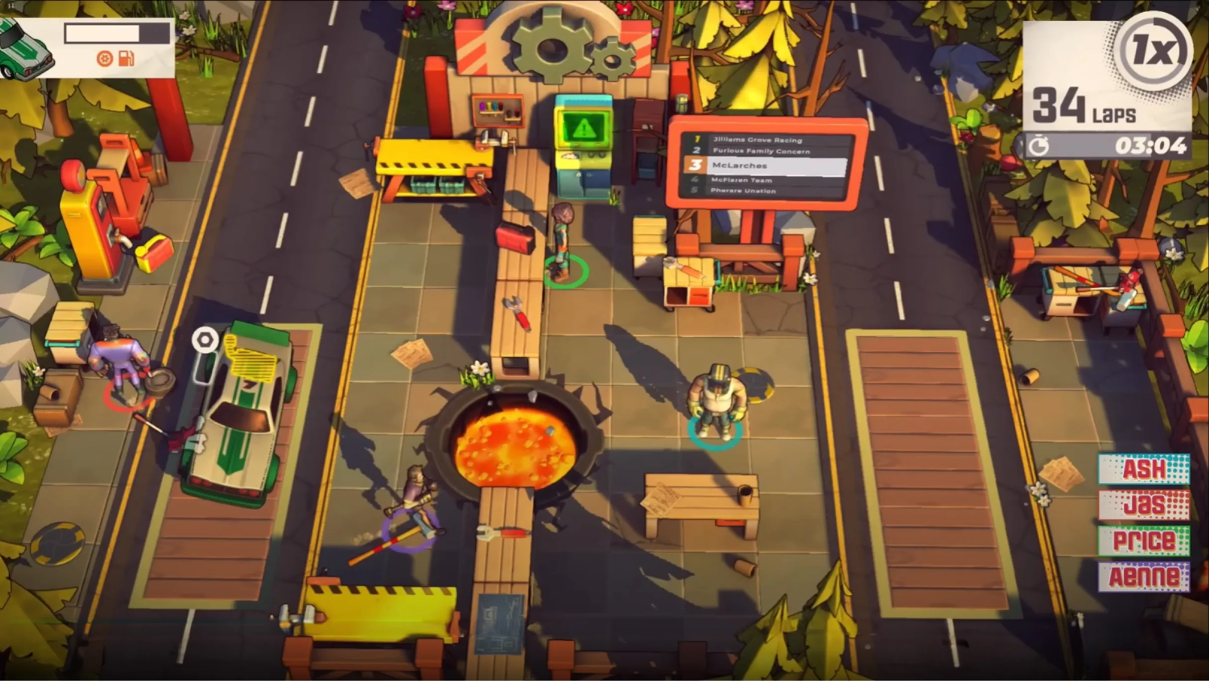 Similarly, in one of the levels of the first Speed Crew campaign, we made an initially challenging environment more navigable by incorporating interactive tables.